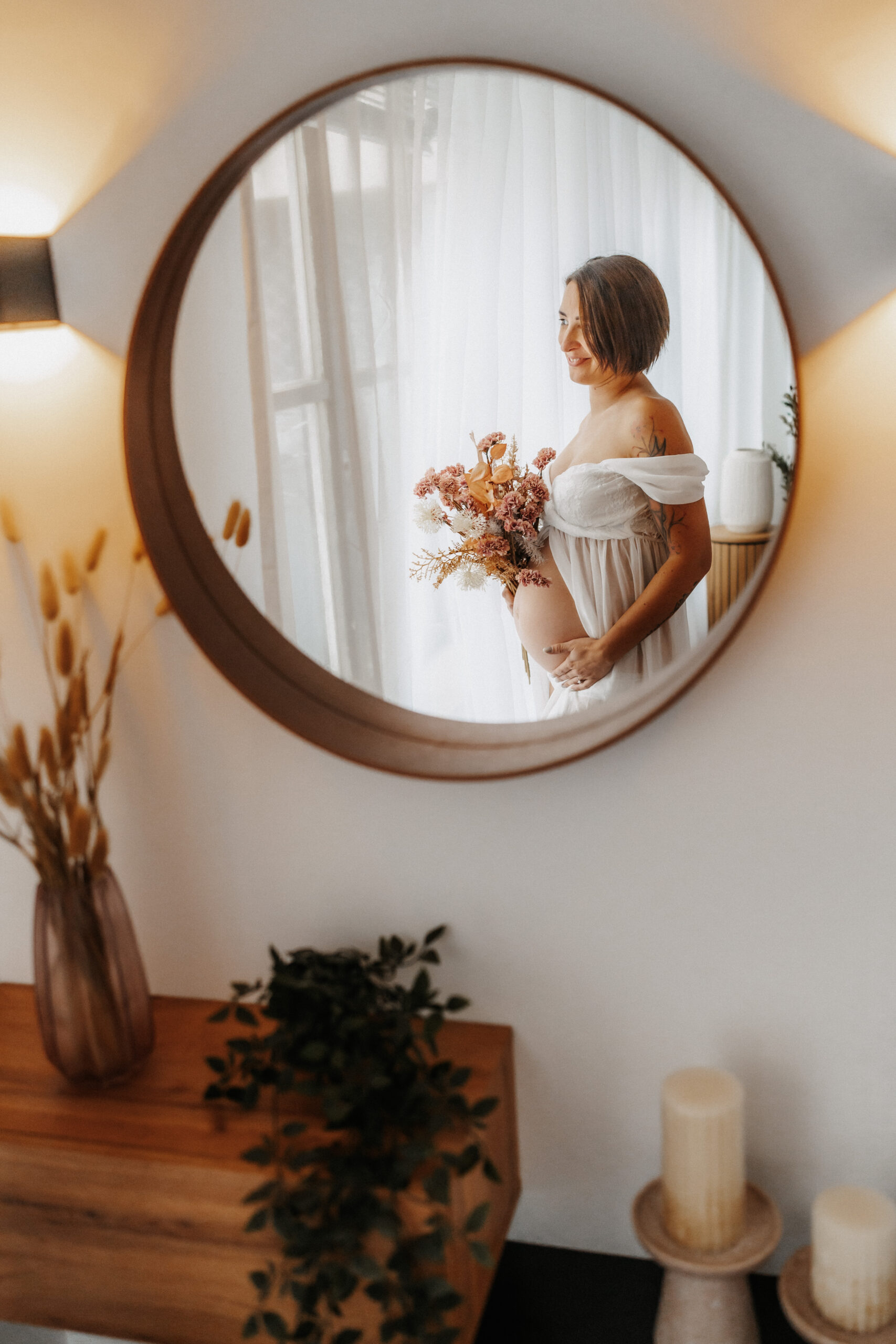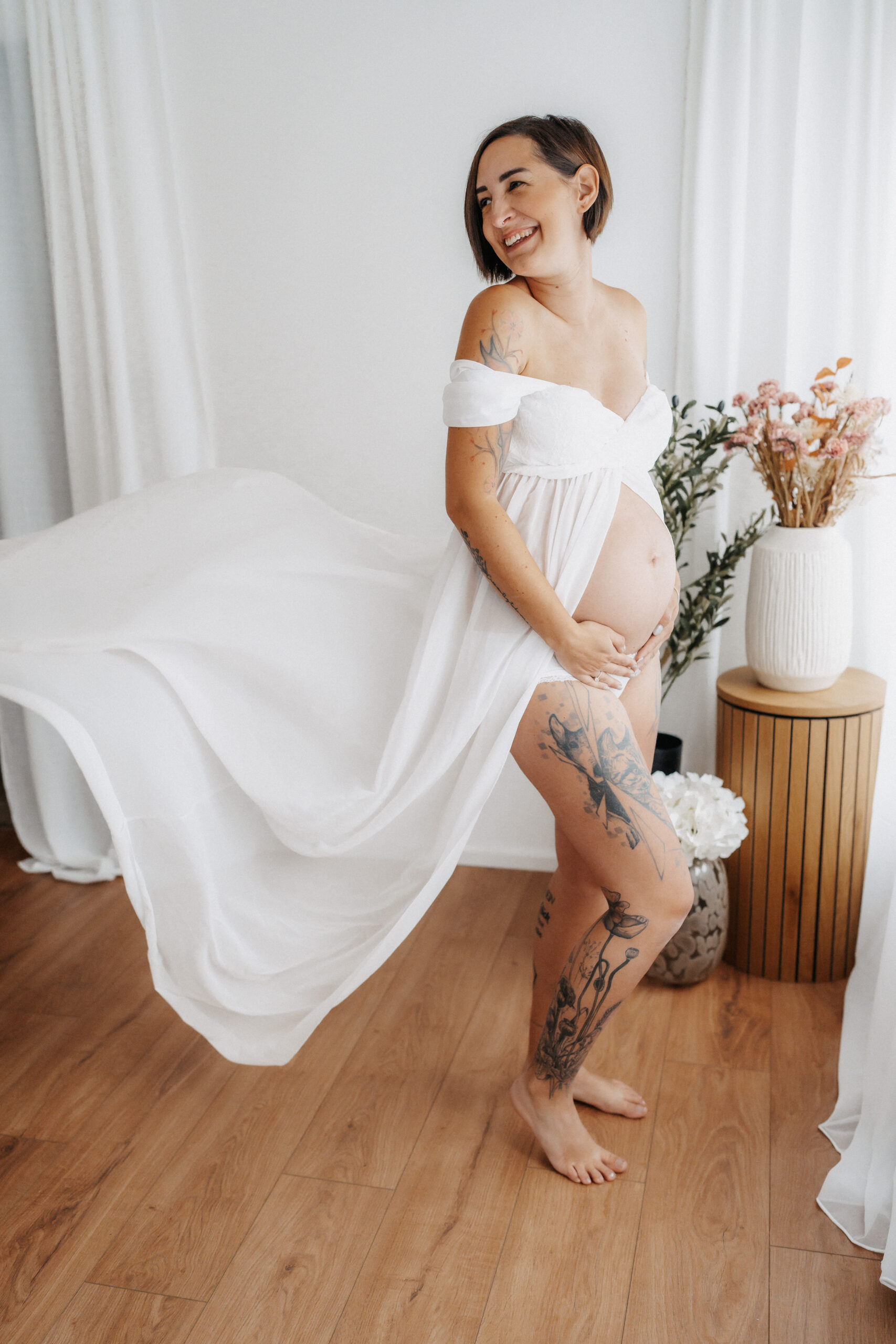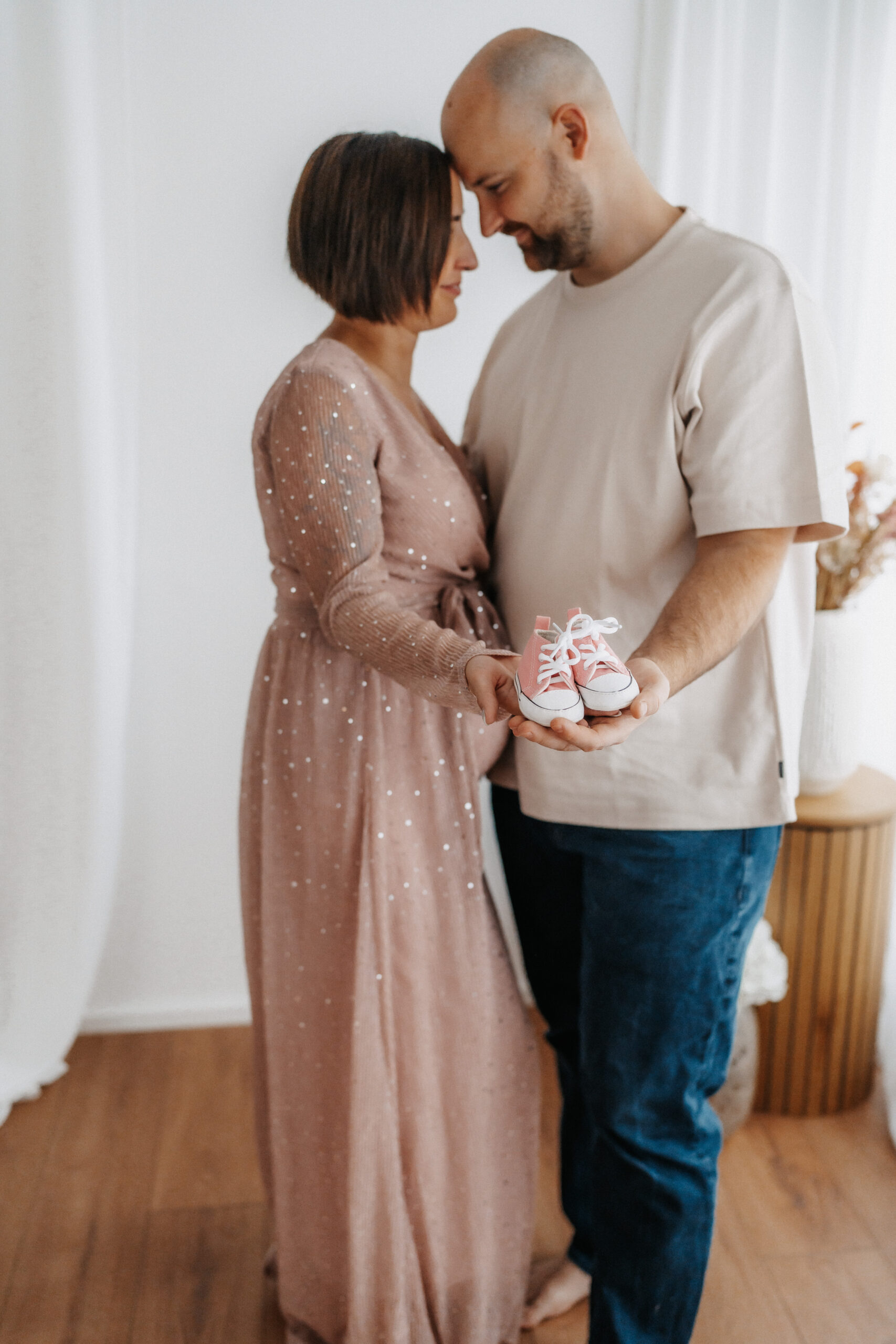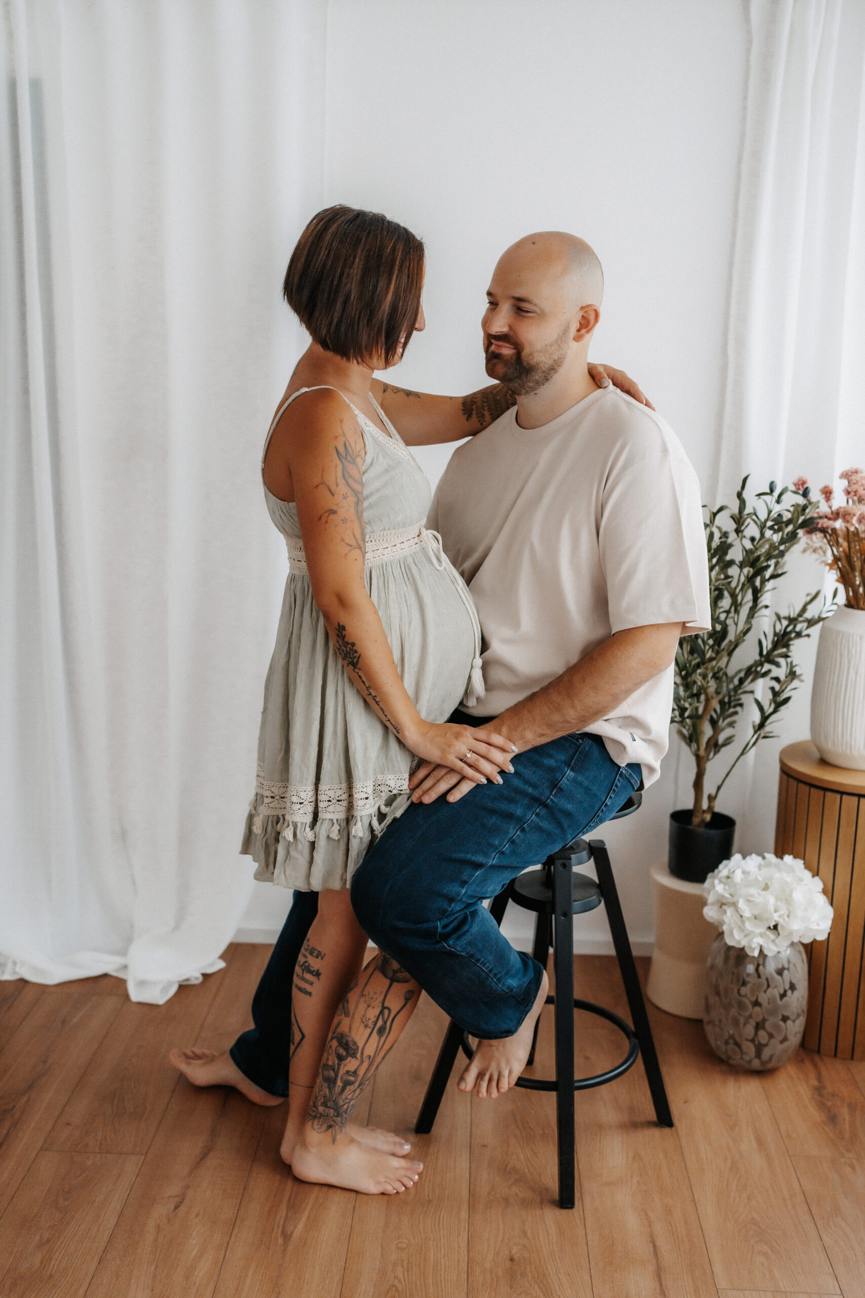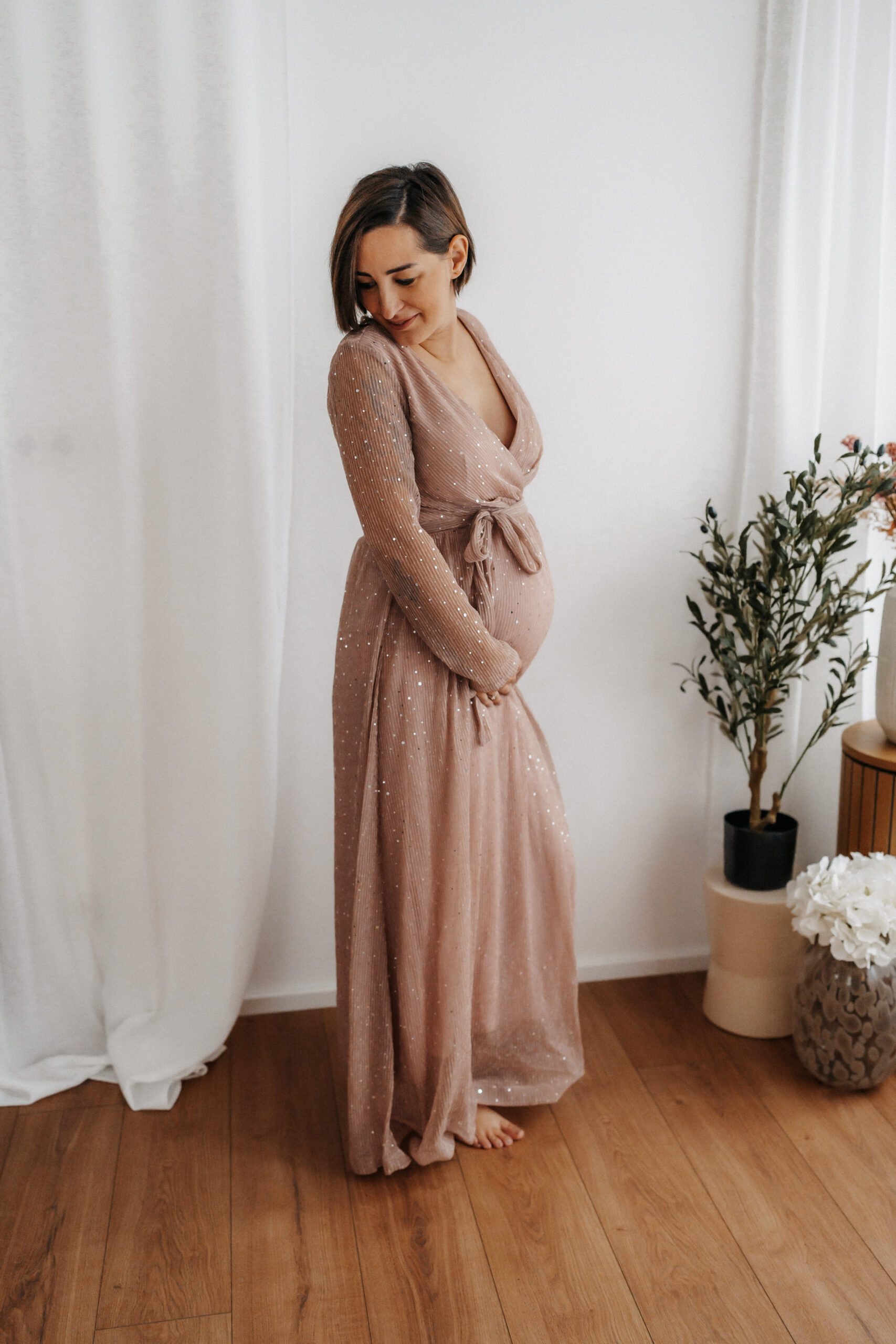 Mit sanftem Licht, warmem Ambiente und einer entspannten Stimmung entstehen zeitlose Aufnahmen, die die Vorfreude und Verbundenheit dieser besonderen Zeit widerspiegeln. Für werdende Mamas stehen außerdem ausgewählte, stilvolle Babybauchkleider bereit, die das Shooting noch harmonischer und persönlicher machen.