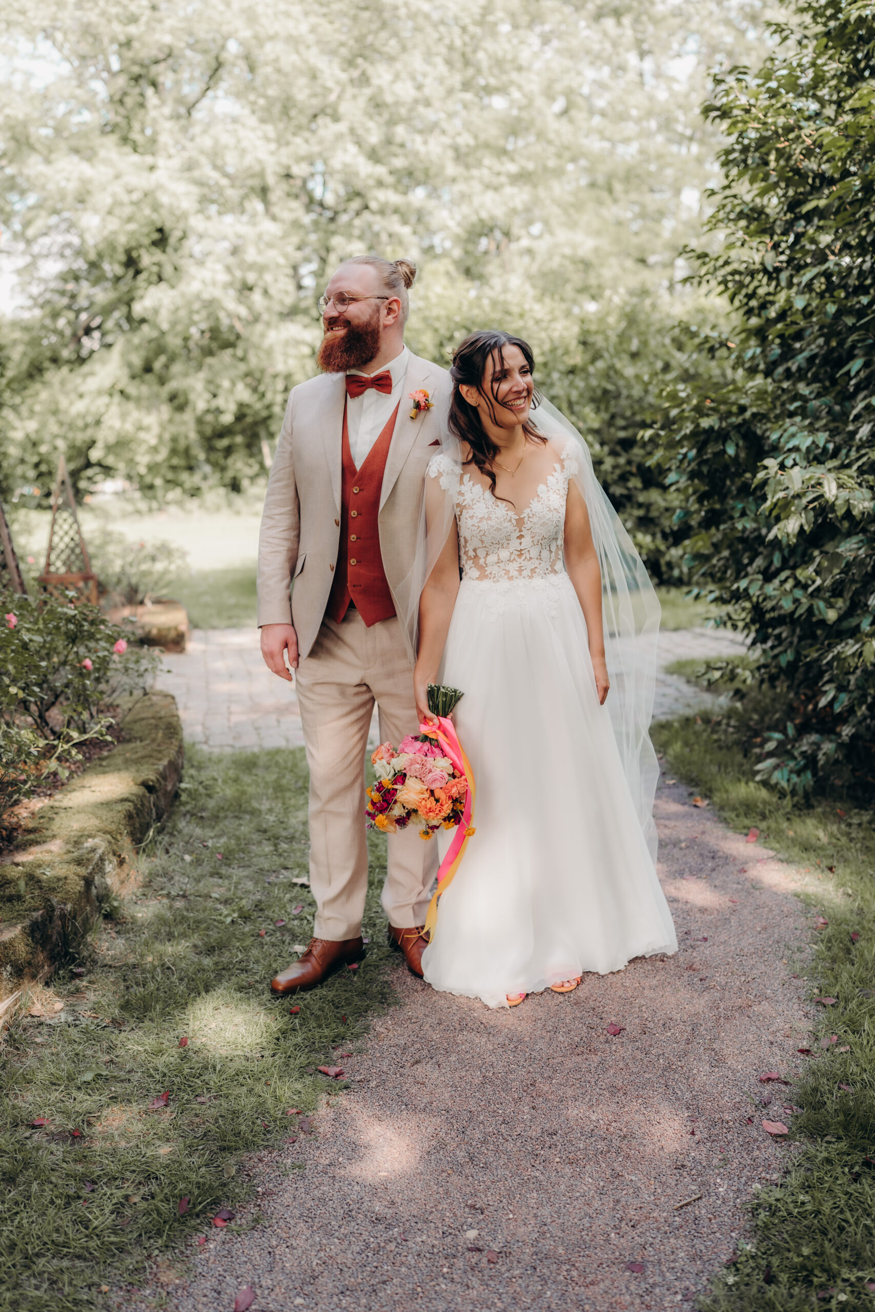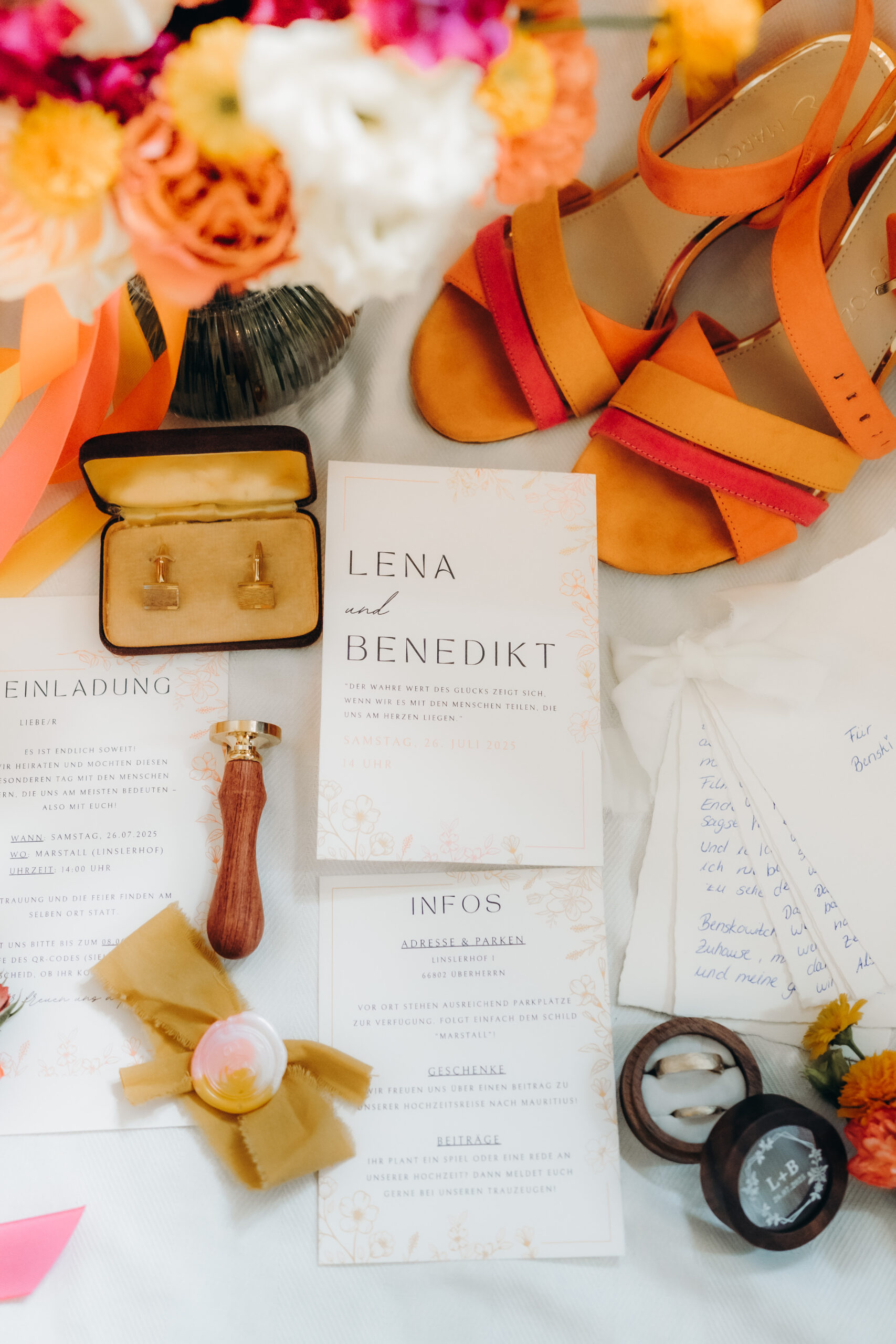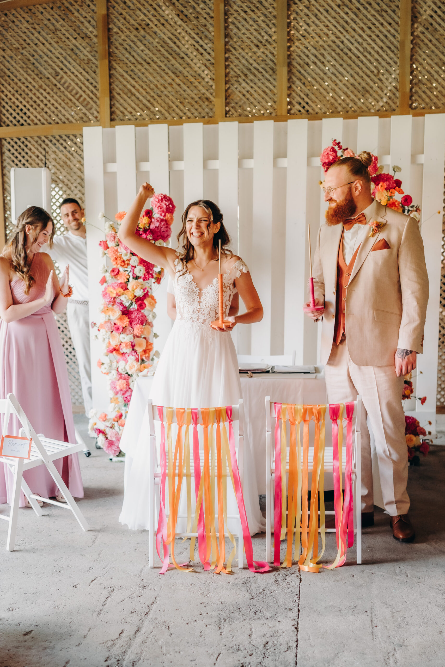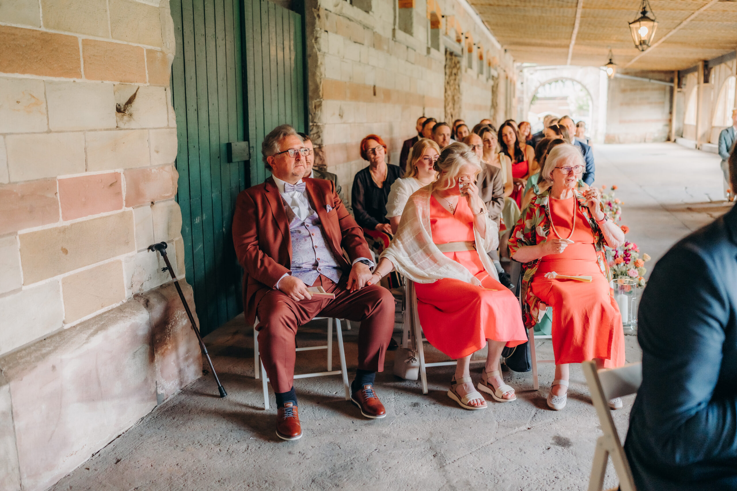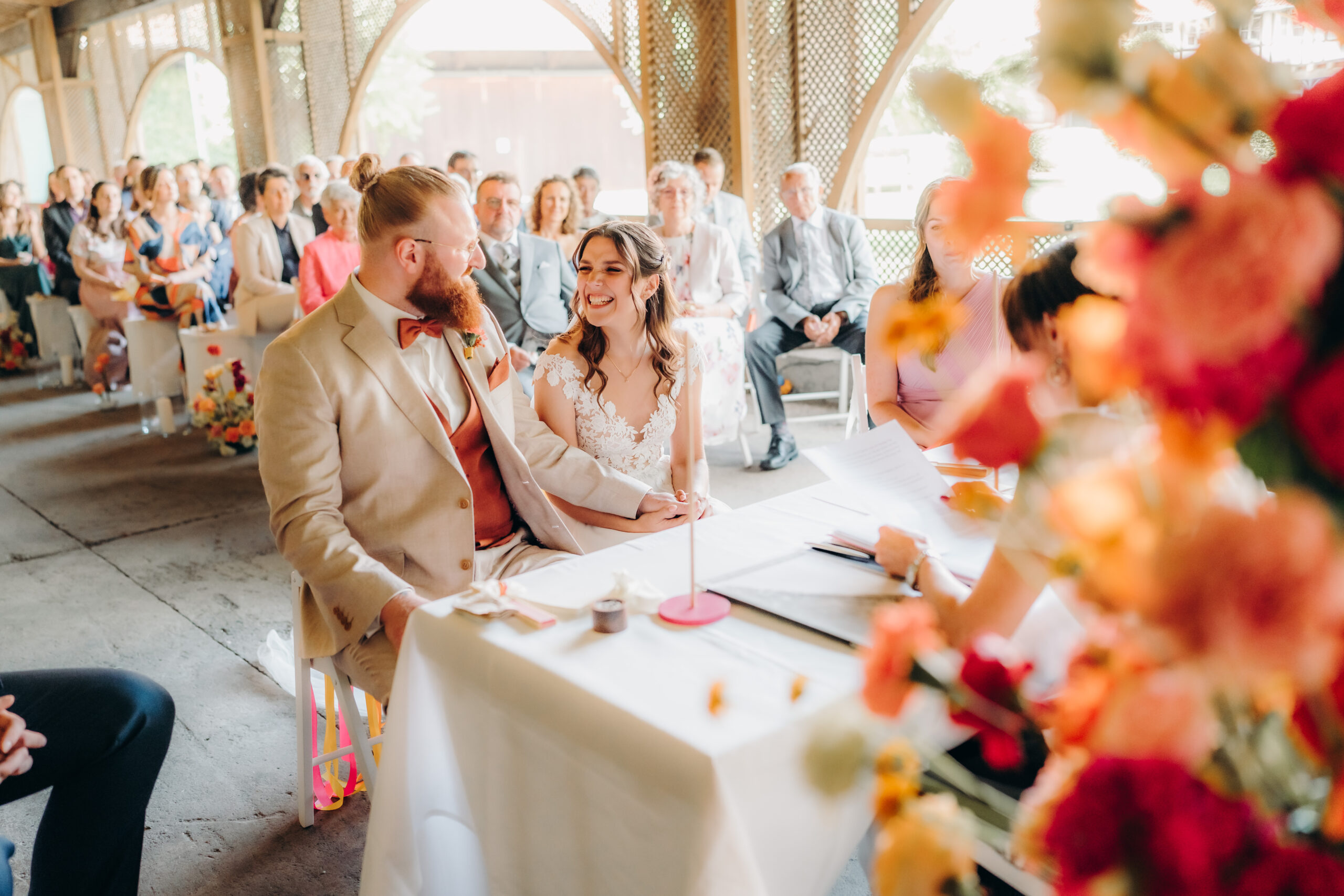 Die standesamtliche Trauung von Lena & Benedikt auf dem Linslerhof in Überherrn war ein absolut besonderer Moment. Die Zeremonie fand draußen statt und strahlte eine so persönliche, intime Atmosphäre aus, dass sie sich fast wie eine freie Trauung anfühlte.Die Kombination aus der liebevollen Gestaltung der Trauung, der wunderschönen Location und der lockeren Stimmung machte den Tag einfach perfekt. Jeder Moment war geprägt von Emotionen, Lachen und echten Verbindungen zwischen dem Brautpaar und ihren Gästen.