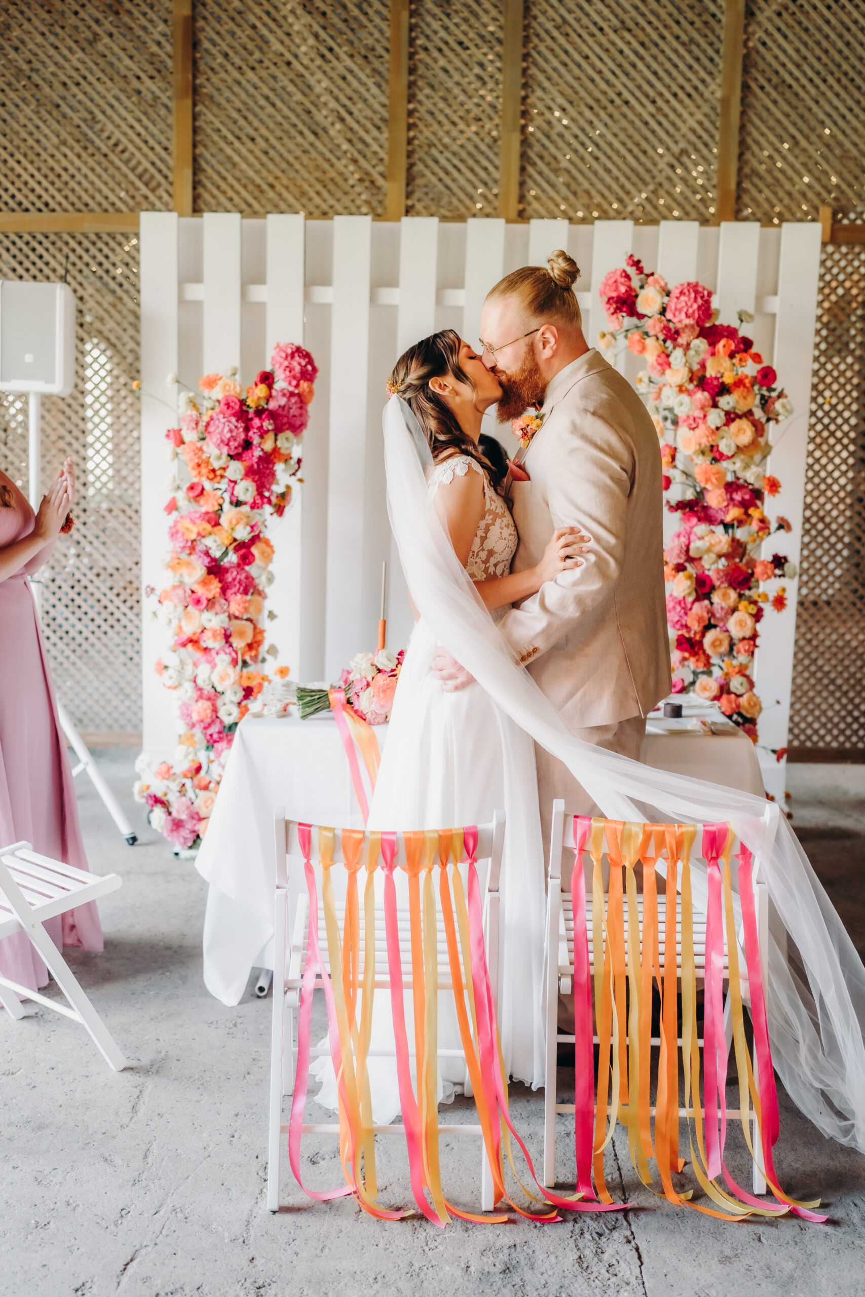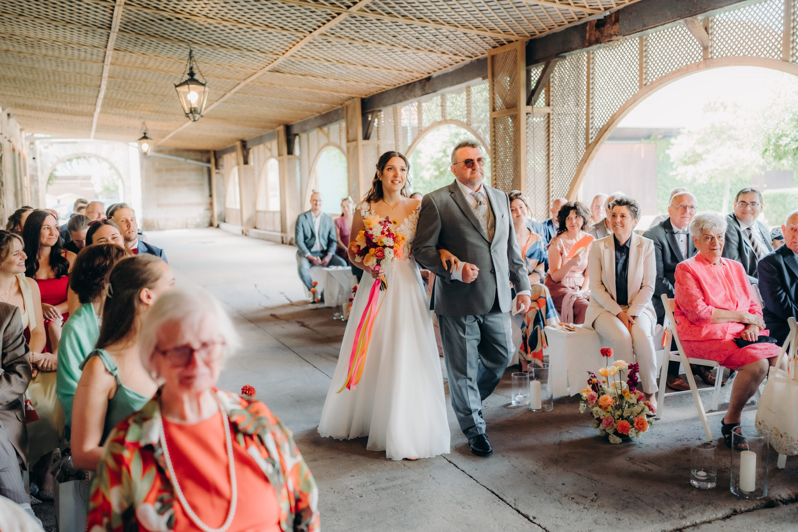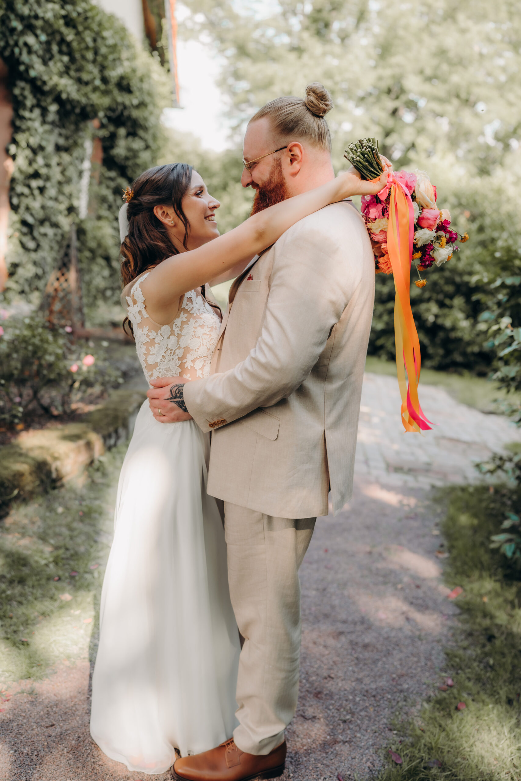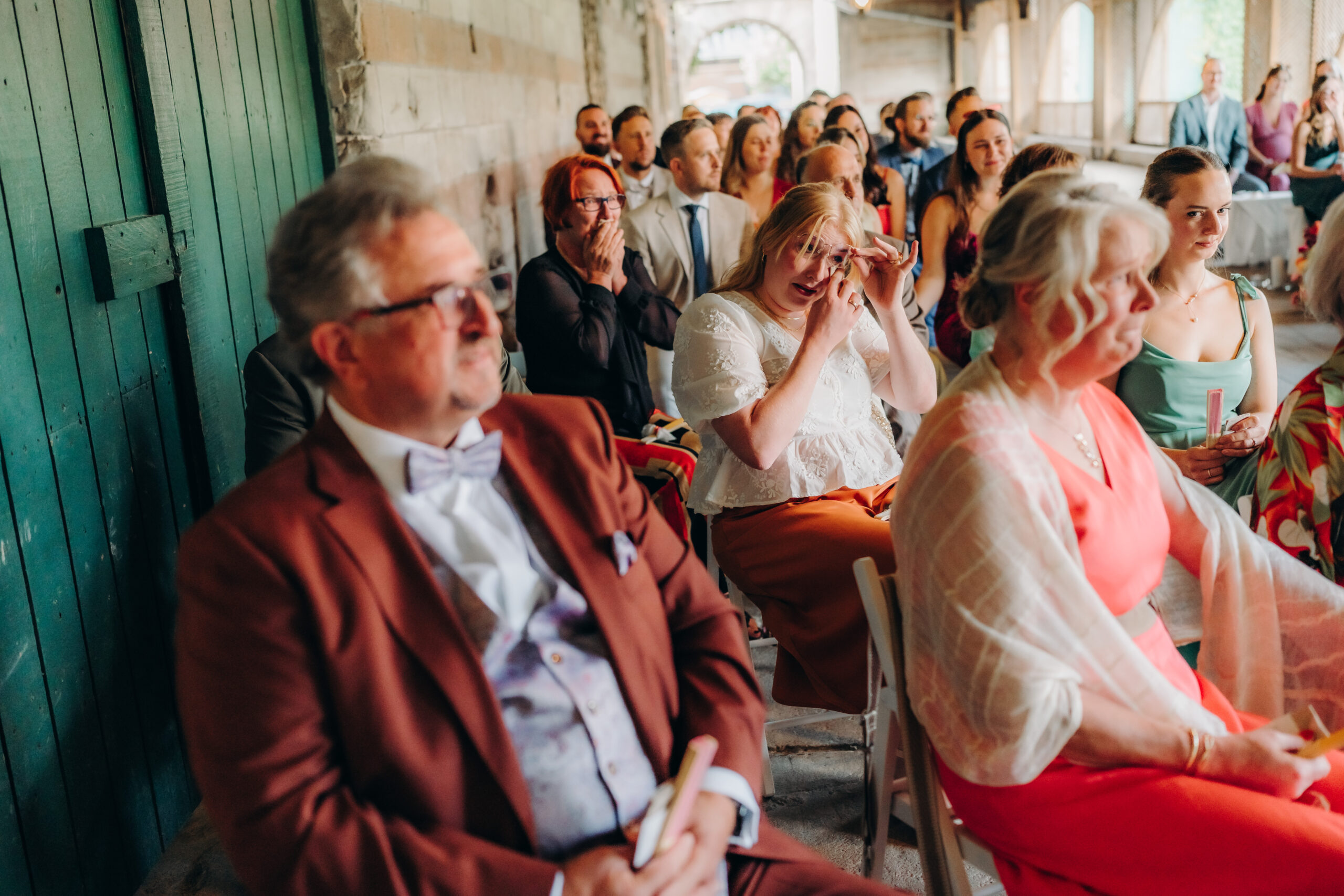 Die standesamtliche Trauung von Lena & Benedikt auf dem Linslerhof in Überherrn war ein absolut besonderer Moment. Die Zeremonie fand draußen statt und strahlte eine so persönliche, intime Atmosphäre aus, dass sie sich fast wie eine freie Trauung anfühlte.Die Kombination aus der liebevollen Gestaltung der Trauung, der wunderschönen Location und der lockeren Stimmung machte den Tag einfach perfekt. Jeder Moment war geprägt von Emotionen, Lachen und echten Verbindungen zwischen dem Brautpaar und ihren Gästen.