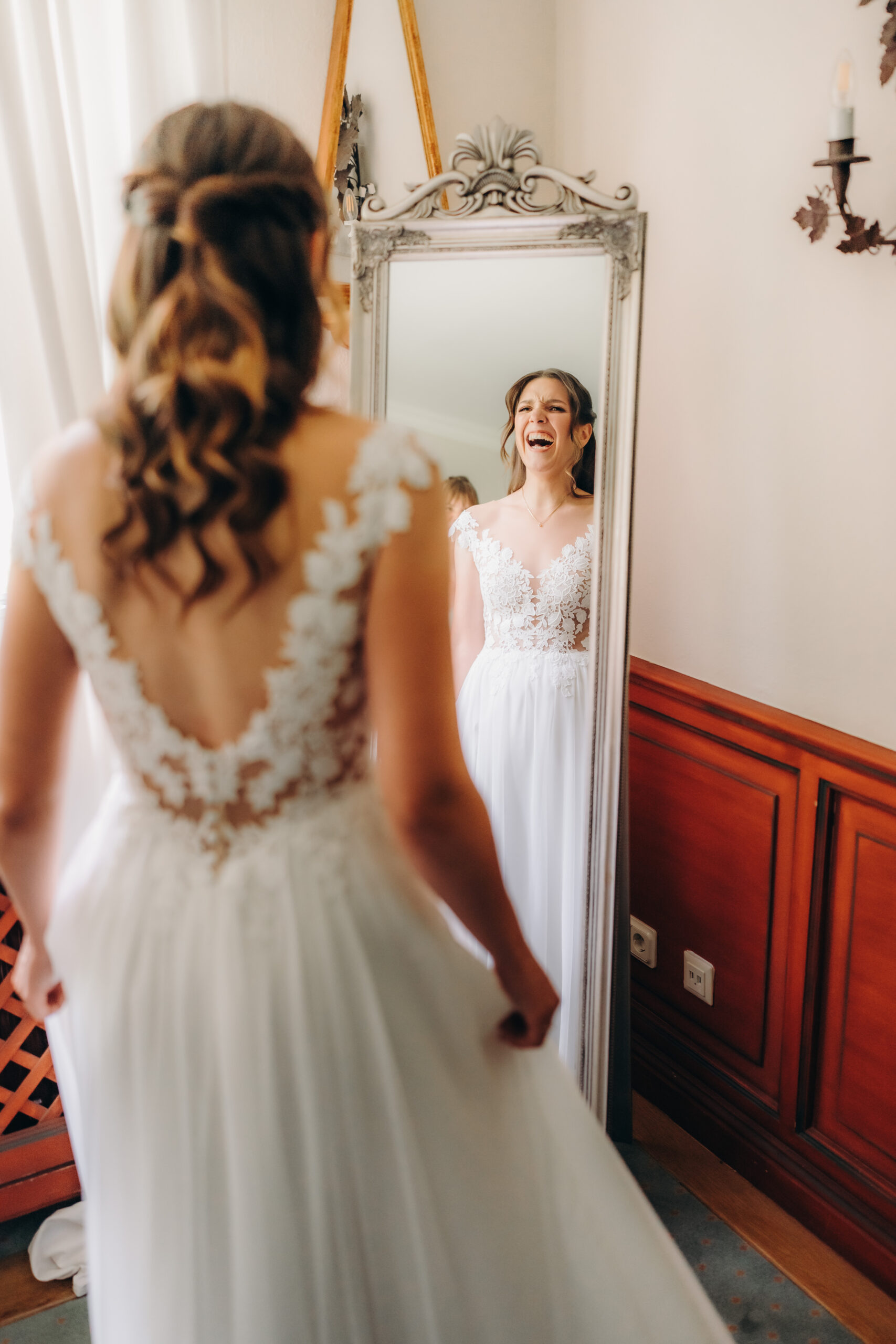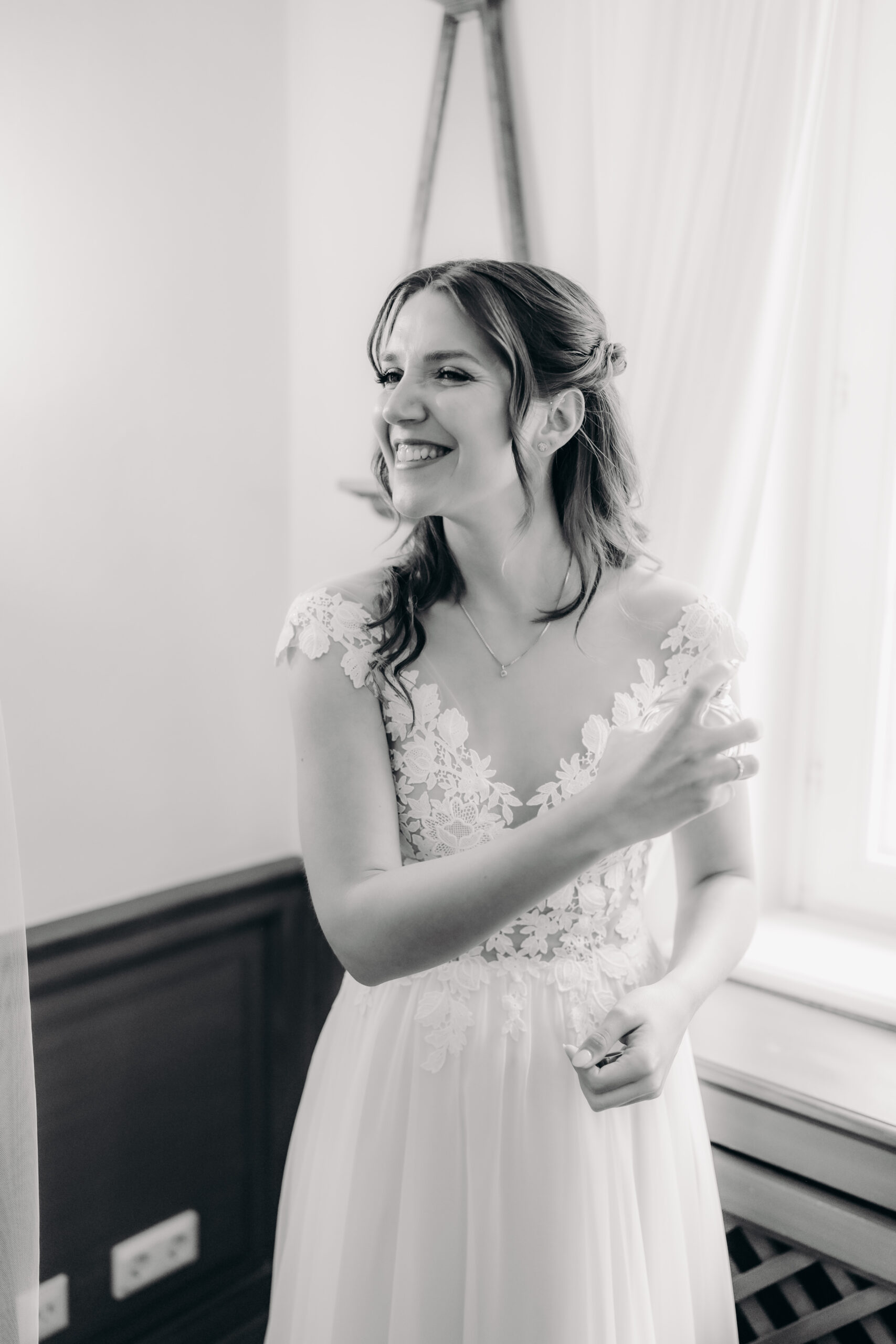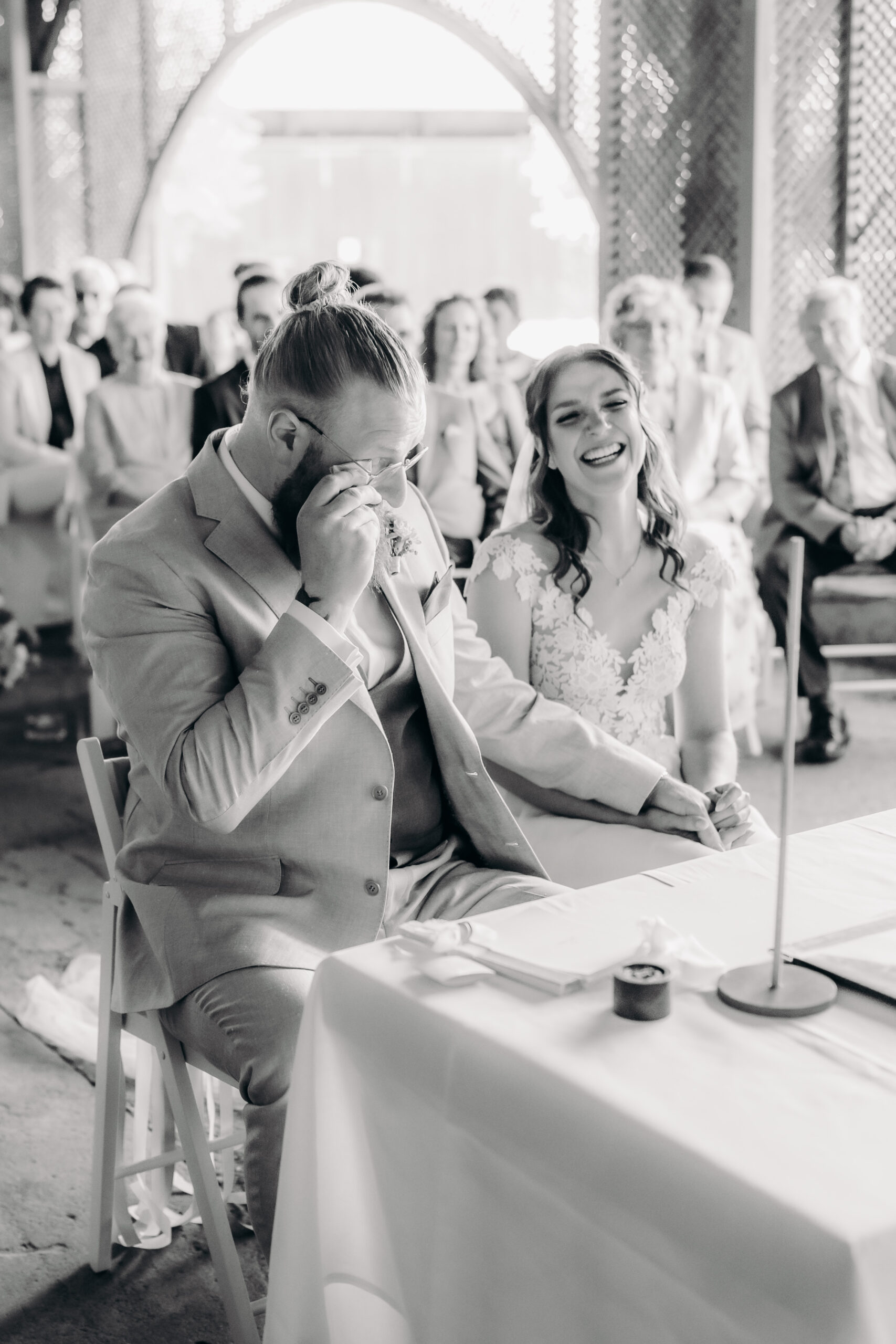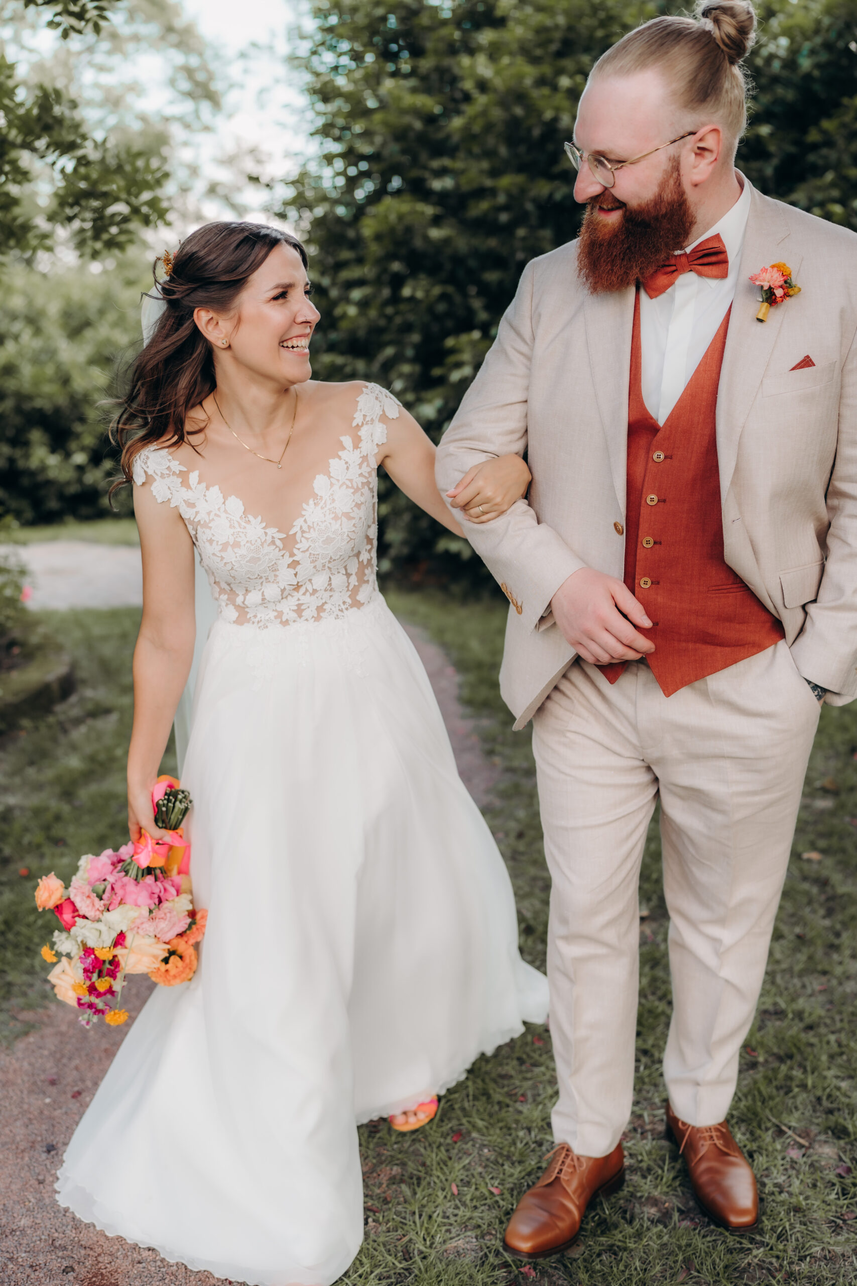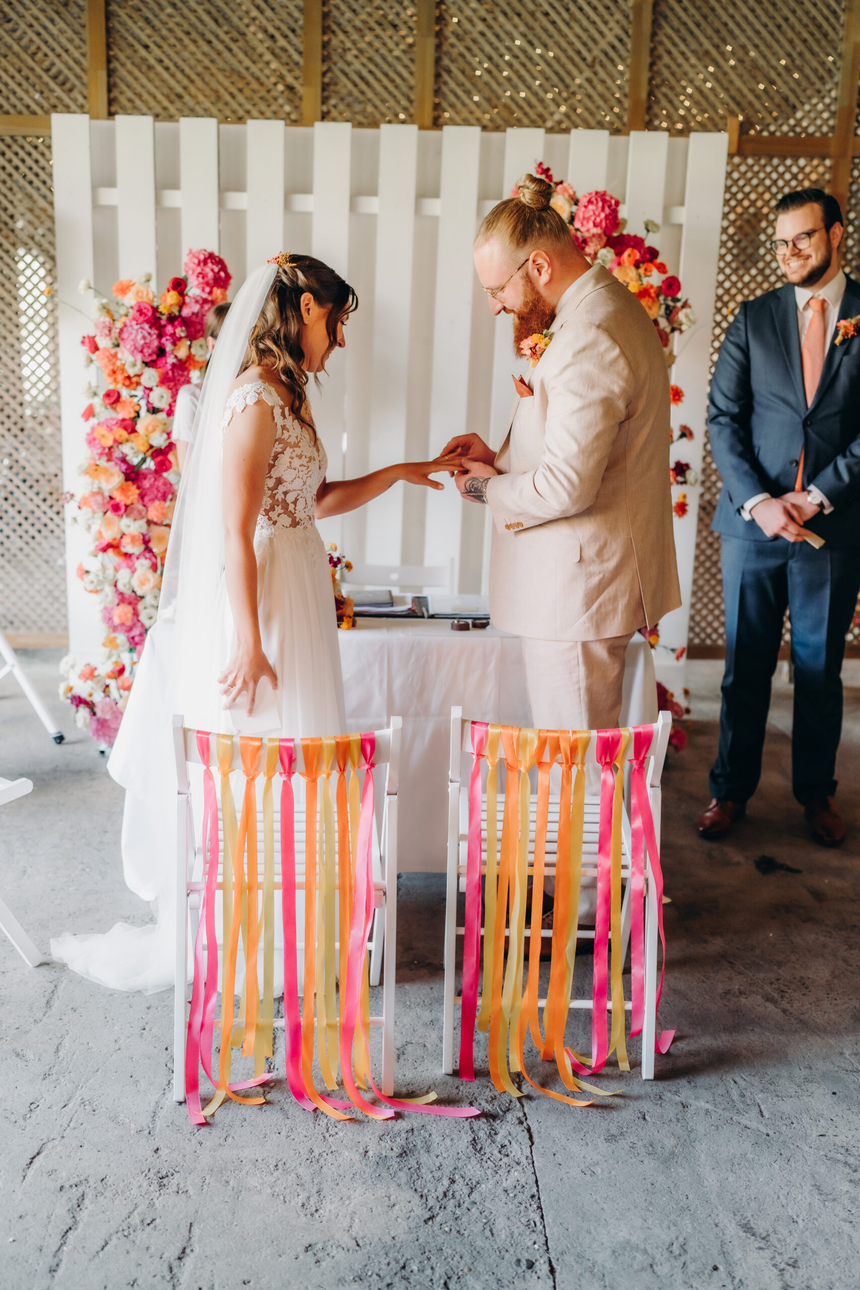 Die standesamtliche Trauung von Lena & Benedikt auf dem Linslerhof in Überherrn war ein absolut besonderer Moment. Die Zeremonie fand draußen statt und strahlte eine so persönliche, intime Atmosphäre aus, dass sie sich fast wie eine freie Trauung anfühlte.Die Kombination aus der liebevollen Gestaltung der Trauung, der wunderschönen Location und der lockeren Stimmung machte den Tag einfach perfekt. Jeder Moment war geprägt von Emotionen, Lachen und echten Verbindungen zwischen dem Brautpaar und ihren Gästen.